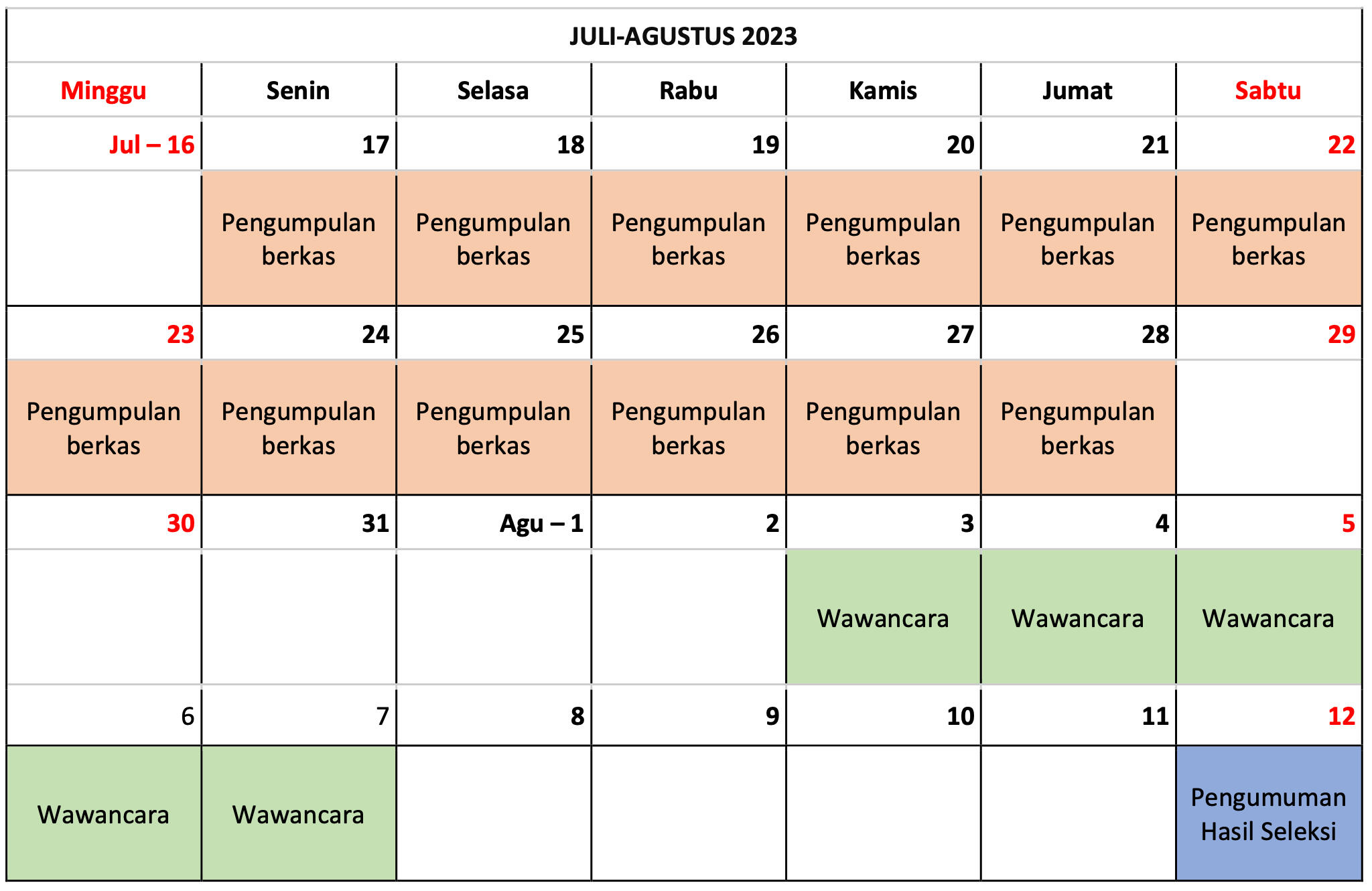 Seleksi wawancara dilakukan secara online pada Kamis, 3 Agustus 2023 s.d. Senin, 7 Agustus 2023.